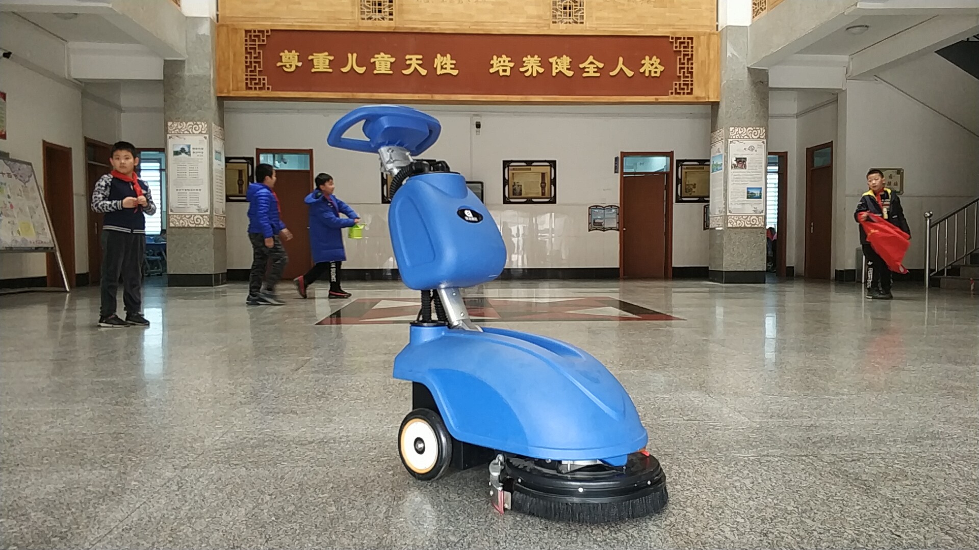 春風(fēng)徐徐,去大明湖游玩的人也漸漸多了。大明湖小學(xué)的校領(lǐng)導(dǎo)為了給祖國的花朵提供一個(gè)良好整潔的學(xué)習(xí)環(huán)境,經(jīng)過多方考察衡量,又根據(jù)自身保潔人員數(shù)量情況,選擇了鼎潔盛世兩款洗地機(jī),一款折疊洗地機(jī)DJ350這款洗地機(jī)適合餐廳地面清洗,餐廳桌椅比較多,空間過道狹窄,DJ350有可調(diào)節(jié)器壓式弧形后吸水扒,清洗效果顯著。