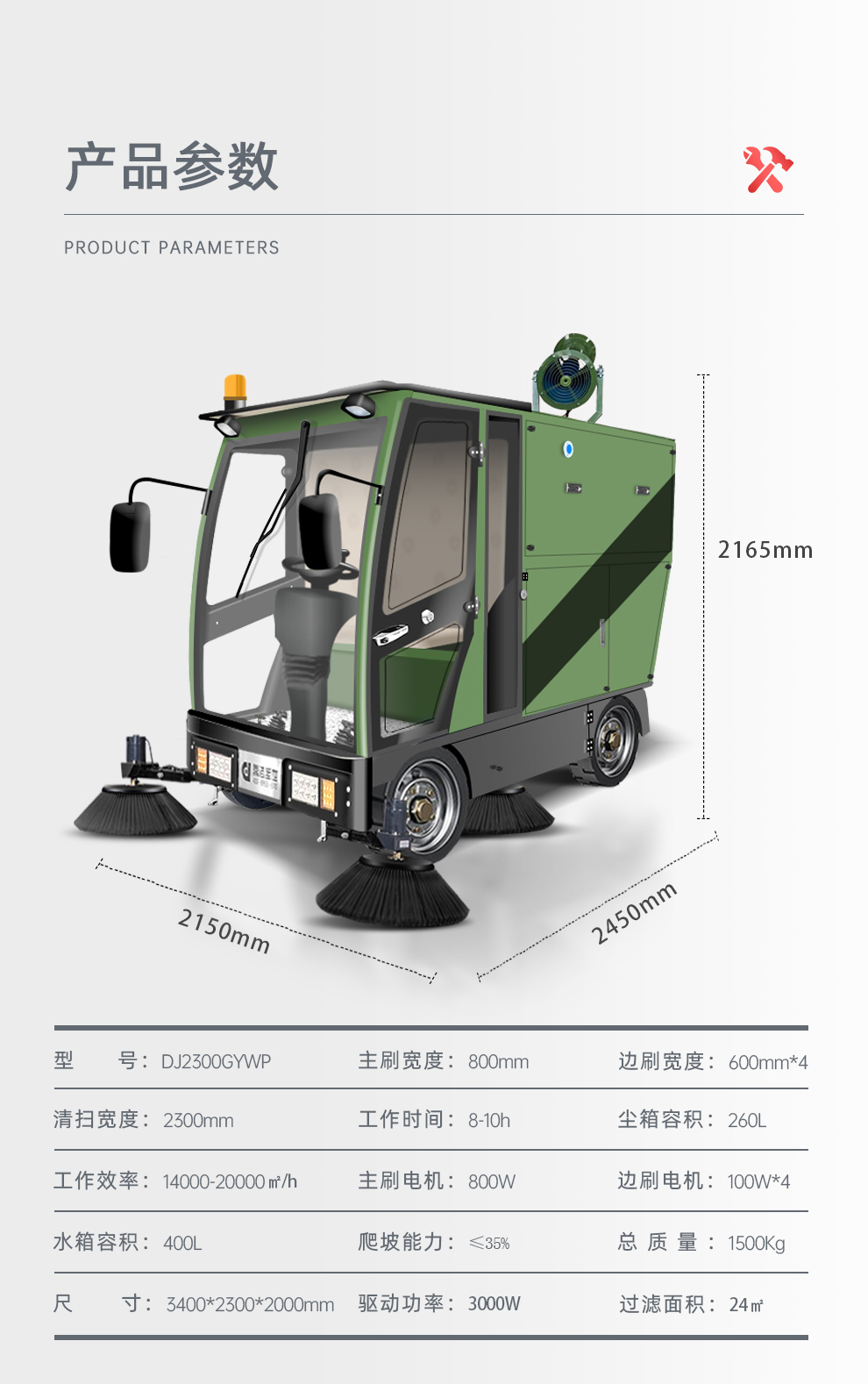 有效水掃寬幅4米,單箱水掃面積8萬(wàn)平方米,單箱連續(xù)沖洗時(shí)間至少50分鐘