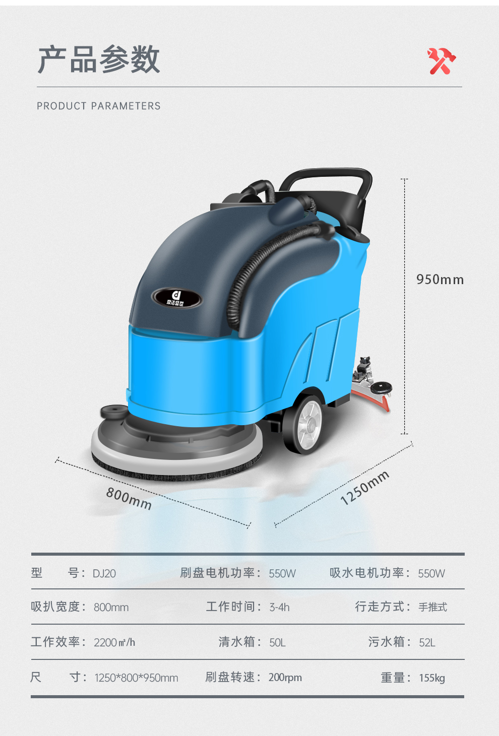 鼎潔盛世DJ20 全自動手推式洗地機電動洗地機物業(yè)保潔